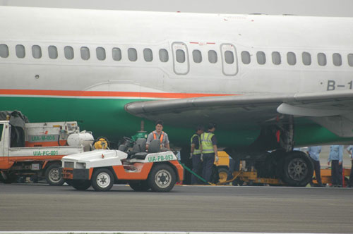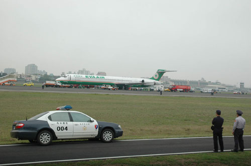 据“中央社”报道,这架BR-17913班次MD-90型接驳机上午八时四十五分,搭载三十六名乘客从桃园飞往高雄,原定上午九时二十分抵达高雄,机长起飞后发现右翼轮胎有响声,怀疑破胎,于是紧急通知高雄机场塔台,展开迫降前置作业。