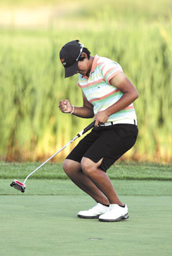 曾雅妮在LPGA锦标赛延长骤死赛击败对手霍斯夺得冠军,神情相当兴奋。(图:台湾《中国时报》)