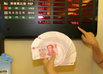 人民币即将在三十日在台湾各大行库开始接受兑换,桃园国际机场29日的银行柜台也早已经将人民币的牌告汇率订出,卖出为新台币四点五五三元兑换一元人民币。 “中央社”图