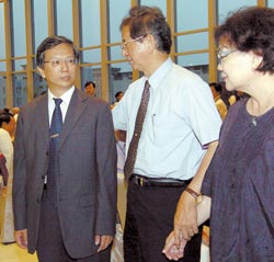 弟弟李远鹏当选院士(左)。晚宴时,李远哲夫妇(中)一同祝贺他。(王英豪摄)