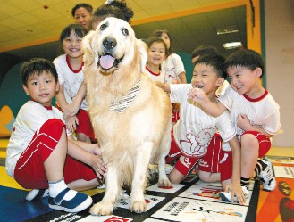 据台湾媒体报道,“小胖”是一只3岁的黄金猎犬,初到幼儿园“兼课”,随即赢得小朋友的喜爱。幼儿的狗“老师”是该幼儿园园长所催生。最近,她首创狗课程,虽然课程安排只有半小时,但她为除去家长的疑虑,特别与狗学校接触,遴选具稳定、服从性高的“小胖”到校“兼课”。