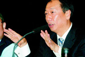 而对于股价一度跌到52.5元,郭台铭表示,过去外资占6 成,最高达63%,去年遭逢金融危机,救自己的基金,这足底长期持有者,如保险公司、退休、管理者一定要卖股救公司。但换一个角度,不是坏事,因为当好时,会回来;因为有难时,要卖可卖,不像一些小公司,卖都卖不掉。郭台铭表示,近日许多基金经理人告诉我,过去一年以来,可卖得掉,若未来回来,鸿海是必选股票之一。