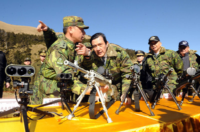 马英九14日前往合欢山武岭视察台湾陆军特训中心武岭寒训基地,慰问受训士兵并参观特训中心各式雪地狙击所使用的特殊装备。