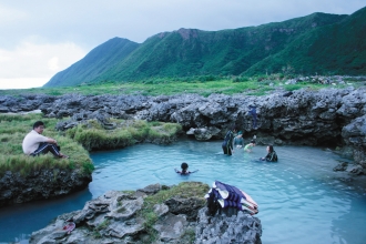 “热!热!热!”是兰屿夏日唯一评语。导游一声“带你们去泡冷泉”,教人心中大喜。从野银部落转进小径,踩在不太平稳的奇岩之间,慢慢接近海滩,奇岩变成细柔的贝壳砂,最后,一洼可容约20人同泡的天然泉池现身!