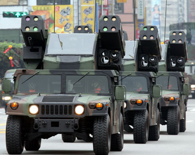 台军在“总统府”前举行预演 展示现役导弹(图)(2)