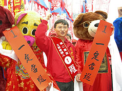抽签会场外蓝绿阵营积极动员造势,现场“冻蒜!(注:当选)”声此起彼落,场面热烈,在警方以人墙区隔蓝绿阵营下,过程平和。