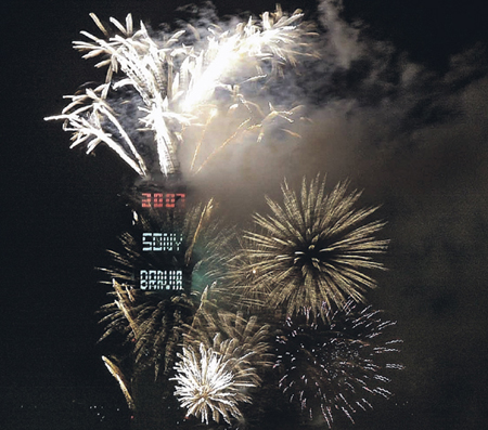 迎接2007年,台北地标101大楼施放璀璨炫丽的烟火营造新年欢乐气氛。一年又过了,迎接2008的到来!记者侯世骏/摄影