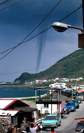 台东兰屿附近海域,7月底出现水龙卷,如图一条巨大水柱直冲天际景象壮观,水龙卷从兰屿机场往渔人部落移动,八分钟后消失。记者陈明成/摄影