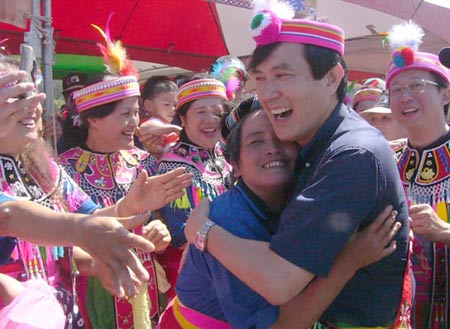 马英九凭借俊朗的外形在台湾有“女性杀手”之称,常被疯狂的支持者拥抱。