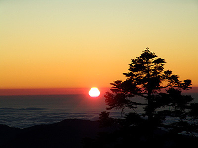 向东望去,就是十峻之首的玉山东峰,狰狞的断崕岩石地形,气势非凡。远方的山峦间是急速翻搅奔腾的云海,在这里看来,却是如此平静,马博拉斯、秀姑峦山、大关山、新康山...等百岳,一座一座的从南到北浮在云上。南方与西方天际与山脉的交接处,云似乎是沈稳而安静的,水平的横卧在群峰之间,分成好几个层次,从淡到深、渐远渐轻,蒙蒙宁静的水蓝,像是国画的渲染技法,有种单纯的美感,细致而淡雅。(来源:大台湾旅游网)