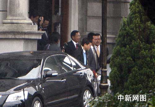 陈水扁与马英九两人选后的首度会面4月1日上午在台北宾馆举行。会谈结束后,陈水扁亲自到门口送马英九搭车离去。(杜洋/摄)
