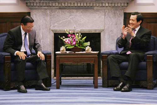 报道说,马英九上午接见江丙坤等团员,萧万长、刘兆玄、苏起、赖幸媛也出席与会。