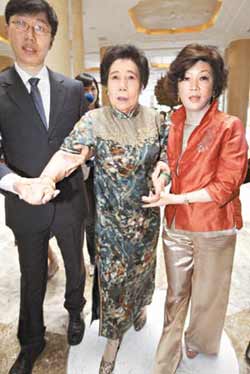 郭台铭母亲(中)、儿子郭守正(左)、张忠谋夫人张淑芬(右)都参加文定仪式。