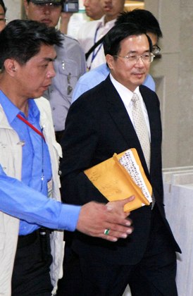 陈水扁以被告身份出庭。(“中央社”图)