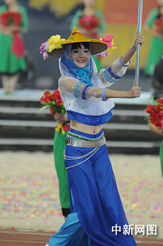 中新网泉州10月27日电 第六届全国农运会于10月26日在福建省泉州市隆重开幕。包括台湾在内的三十二个省、市、自治区的六千多名运动员都将参加比赛。图为农运会开幕上的美女礼仪小姐们。
