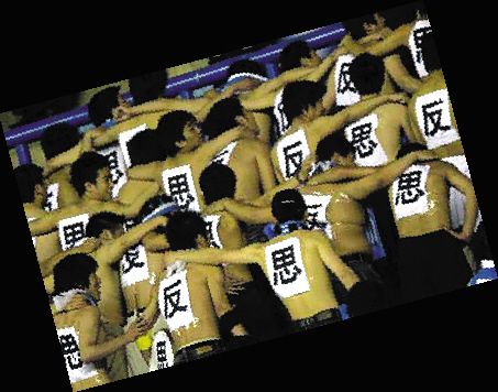 大连实德队主场输给上海申花。一群光着身子的球迷打出标语发泄不满,反思即实德俱乐部的反思,也是整个中超联赛的反思。这个球迷标语是迄今最有创意、最牛的标语。