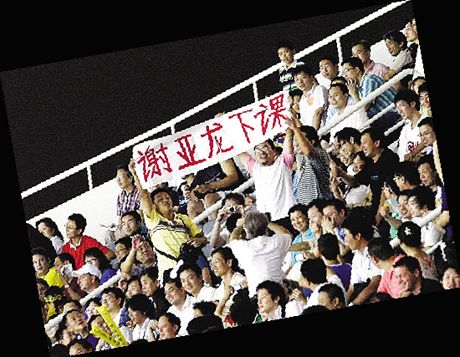 谢亚龙作为中国足协的一把手,在其任期内也是语录翻新不断,从亚洲兵败的吟诗:“恨不抗日死,留作今日羞。国破尚如此,我何惜此头”到女足奥运无缘四强之后说:“女足该练练叉腰肌。”不过,语录再多也不能当球踢,国足和国奥糟糕的战绩让中国球迷们忍无可忍,在很多地方打出了“谢亚龙下课”的标语,而在北京奥运会期间,这句话更取代了“加油”的助威声。
