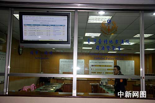 12月29日下午2时,台北地方法院召开前台湾地区领导人陈水扁羁押庭,经过长达12多小时的庭讯、评议后,合议庭审判长蔡守训30日2时25分裁定將陈水扁羁押,但不禁见。陈水扁被收押的公告就是在这里发布。 (中新社记者 陈立宇/摄)