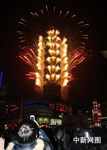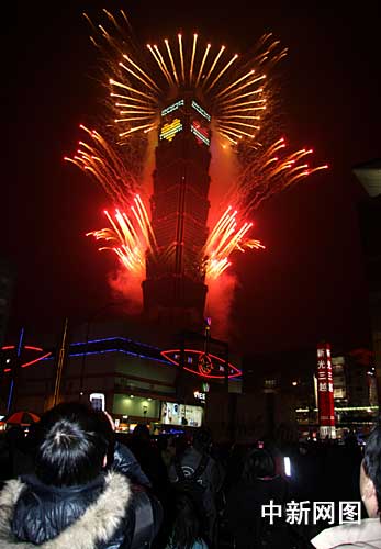 一月一日凌晨,台北市在一0一大楼施放烟火,迎接2009年元旦的到来。吸引了大批市民观看。 (图文/中新社记者 陈立宇)