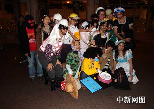 一月一日凌晨,参加化妆舞会迎新年的台北市青年。中新社记者 陈立宇/摄