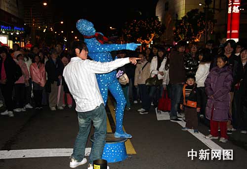 跨年夜的台北市街头舞蹈家。中新社记者 陈立宇/摄