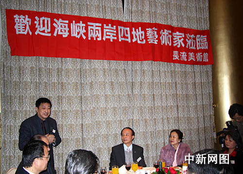 中新网1月11日电 1月11日,由中国油画家学会、海峡两岸创作研究基地主办。台湾长流美术馆、厦门中华儿女美术馆承办的“海峡两岸四地画家画两岸——奇巧纵横写生交流活动”将在花莲展开。10日晚,台湾长流美术馆在台北圆山饭店宴请前来参加活动的两岸及港澳三十多名画家。