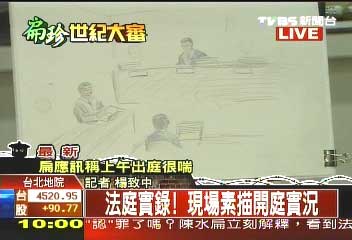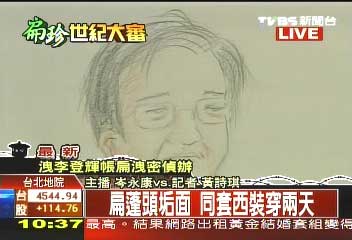 法庭素描,陈水扁蓬头垢面,神情疲惫。TVBS图