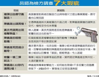 对于项目小组让已死亡主嫌陈义雄独自承担枪击案罪责,吕秀莲在书中抨击,检方虽予陈义雄不起诉处分,却在处分书中论断其罪状,等于实质宣判其罪,违背法律人的基本法学素养。