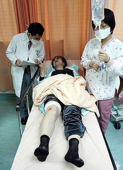 当年公布的吕秀莲中枪后送进奇美医院治疗的照片。