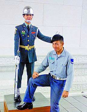 中新网4月1日电 据台湾《苹果日报》报道,号称“精实壮大”的台军门面三军仪仗队近来发生“露毛”不雅照片在网上流传,甚至还有仪仗队在台北忠烈祠站岗执勤时比V字手势、或装斗鸡眼的“搞笑”照片。不少网友痛批三军仪仗队的照片“没有羞耻”,“简直丢人现眼”“立委”也要求军方重整军纪。