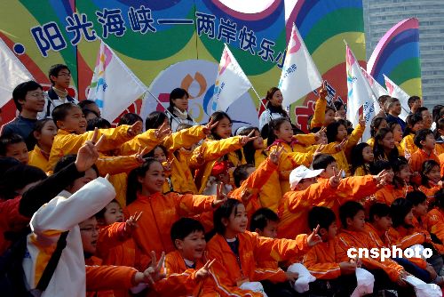 一月三十一日上午,温暖冬日沐浴下的福州五一广场上,海峡两岸二千五百多名孩子组成赤、橙、黄、绿、白的彩色方阵,尤其是台湾小朋友服装整齐,显得格外鲜艳夺目。由福建省广播影视集团、少先队福建省工作委员会、台湾东森媒体集团共同主办的“二00七•阳光海峡——两岸快乐小天使活动营”,在这里隆重开营。中共福建省委副书记王三运宣布活动营开营。
