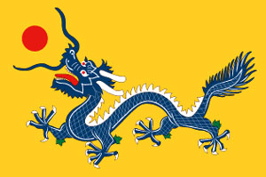 大清四角黄龙旗呈四方形,横4.92米、纵2.16米,上面绣着一条龙和一个太阳。