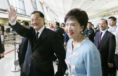 据“中央社”报道,连战夫妇是在上午十时四十分抵达桃园国际机场,随即进入贵宾室短暂休息。在准备进入候机楼时,大批媒体记者上前采访,连战表示,此行是到新疆走走看看。