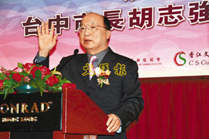胡志强表示,台湾地区、福建省和香港的人口总数达6500万,超越意大利和法国,去年台港间贸易额达393亿美金,台湾赴港人数达299.3万人,中部约占百万,显示台港交流频繁。他认为,台中和厦门直航前,香港可做为两地最佳桥梁,直航后,厦门就是香港和台中携手进入大中华经济圈的最佳跳板。