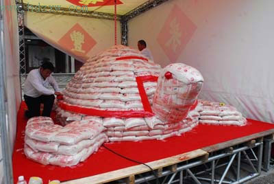 去年元宵节,澎湖同胞用6000公斤大米制成的米龟(资料图片)
