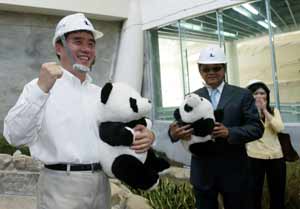 另据报道,台北市动物园27日以公开4月即将完工的熊猫馆,展现争取熊猫展出企图心,市长郝龙斌站在熊猫馆前宣示:“熊猫预计10月抵台,检疫后11月开放展示。”