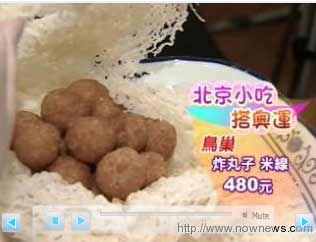 北京老字号中华美食首度引进台湾,除了招牌菊花烧卖,业者也搭上奥运顺风车推出一系列奥运美食,像奥运场馆鸟巢,外观用米线编织,里头则放入炸丸子,外酥内软风味独特;水立方也是超逼真,外头用猪肉冻制造透明感,里头则包裹鸭肝;另外,还有形似奥运标志五环图,同样采用菊花形状,五种颜色搭配,要甜要咸任君挑选,但为了色香味兼具,业者也曾伤透脑筋。