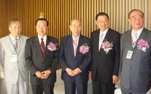 海基会董事长江丙坤(右二)与海协会副会长王在希(左二)七日出席第十三届中国现代化学术研讨会。中为“促进中国现代化学术基金会”董事长梅可望。 (“中央社”图)