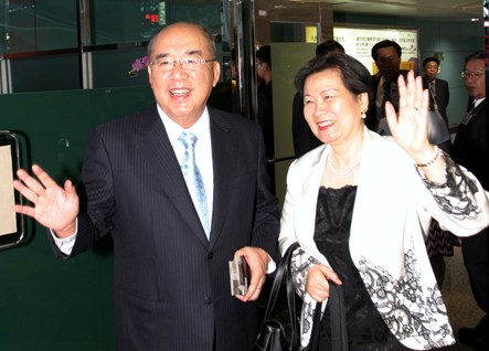 吴伯雄启程赴北京出席奥运开幕式。(“中央社”图)