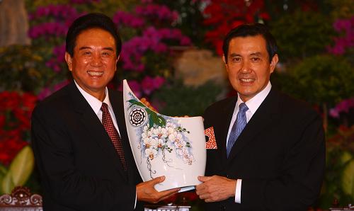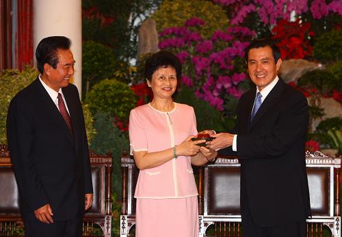 马英九向赖晓华赠送礼品。新华社记者 邢广利 摄