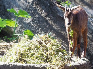 团团、圆圆可望在年底来台,动物园除了积极准备大熊猫来台事宜外,也开始挑选赠送给大陆的长鬃山羊及梅花鹿。动物园表示,长鬃山羊是台湾唯一的野生牛科动物,雌雄头顶都有一对终身不脱落的洞角,跳跃力惊人,一跃就是2米,有“台湾羚羊”的别称。长鬃山羊曾与日本动物园交换,目前园内共有34只。而长鬃山羊每胎只产一仔,今年园内共产下7只小羊,分别名为“长榕、长栎、长竹、长梅、长蕊、长蔓、长茵”,四雄三雌,动物园将从中挑选出2只,雌雄各一,赠送给对岸。