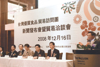 由台北世界贸易中心所举办的台湾优质食品贸易访问团,16日在广州威斯汀大酒店举行。图片来源:台湾《联合报》