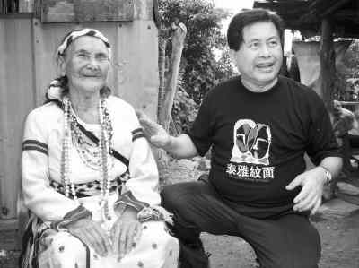 方阿妹,就是田贵实工作室里一幅纹面老人照片的主人。岁月在老人脸上刻下了沧桑,却难掩天生丽质。额头所纹的图案已经模糊,一只眼睛也已失明,眼神却依然安详平和。老人在台湾也算名人,国民党2008参选人马英九下乡时,还专程到这里看望了她。好客的老人出口成章,现场吟唱一曲:“美丽的大地,无论什么人种,大家都相融相处,远方的人来看我,祝你们身体健康。”田贵实依偎在老人身旁做翻译,两人情同母子,场面煞是动人。