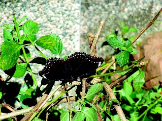 二个多月前,石进宏在伊达邵一带找到4个疑似蝴蝶的蛹,没想到人工孵化后,居然是伊达邵已相当少见的“琉球紫斑蝶”,孵出3公、1母,最近再繁衍下一代,目前合计已在园内有20只。