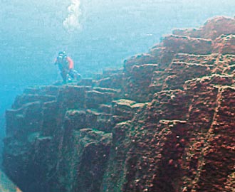 中新网1月4日电 据台湾《联合报》报道,在澎湖北方海域的大硗屿海底有一处开口朝西北、呈微笑状的柱状玄武岩,长度达200公尺,高约10公尺,每枝石柱的直径约1公尺,节理明显宛如“海底城墙”。