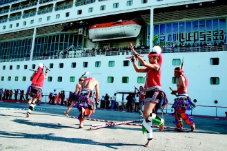 中新网3月17日电 据台湾《联合晚报》报道,大陆安利营销精英团17日上午搭邮轮“海洋神话号”抵达花莲港,花莲县在港边安排原住民舞蹈欢迎,大陆观光客看得兴高采烈。