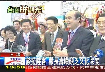 台湾观光协会要严长寿带领金门连江宜兰花莲到上海,营销台湾旅游,面对先前北京喊出百万人游台,严长寿感叹,光喊拉大陆客的口号不够,台湾拼观光还是缺乏文化深度。