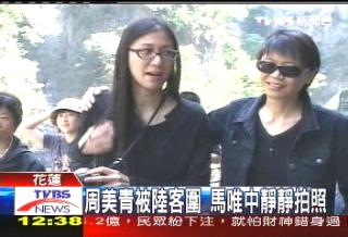 周美青一行人参观了九曲洞、燕子口,也碰上了大陆观光客,他们看到了周美青抢着合影留念,周美青也很配合,还和大家一起唱歌合照,展现随和的一面。