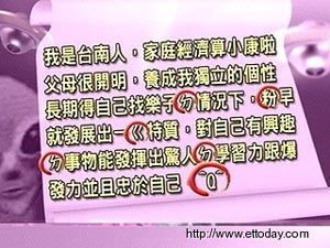 中新网8月29日电 常在聊天室出现的“火星文”现在跨界了出现了!岛内7年级生的履历表竟然也出现火星文字,让求才厂商哭笑不得,因此很多履历表都被视为无效。
