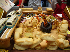 台北市政府与台北市糕饼商业同业公会4日至6日举办的凤梨酥创意大赛,每一家糕饼师傅推出原味与创意凤梨酥作品。4日上午的“台北凤梨酥,健康新气象”活动,业者挖空心思做出创意的凤梨酥造型,有以凤梨酥做成的棋盘、抢搭棒球热潮、以凤梨酥围成的棒球场,还有以凤梨酥做成的动物园模型。